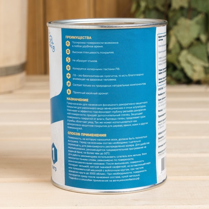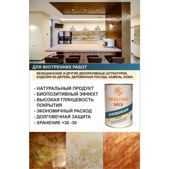 Влаго-биозащитная пропитка "Веницианский лоскутный воск", золото, 1л, железная банка