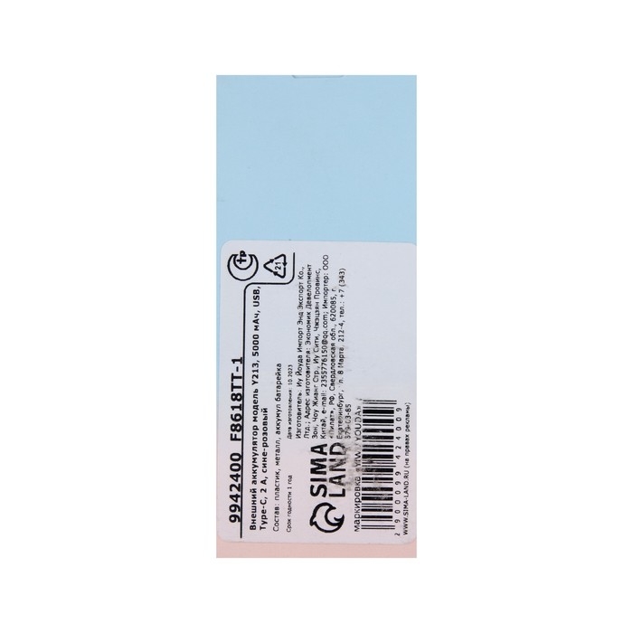 Внешний аккумулятор Y213, 5000 мАч, USB, Type-C, 2 А, сине-розовый