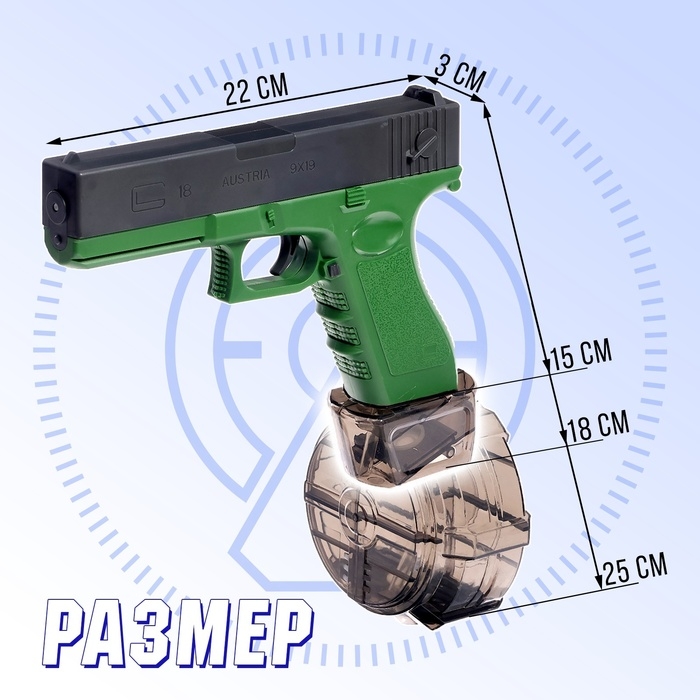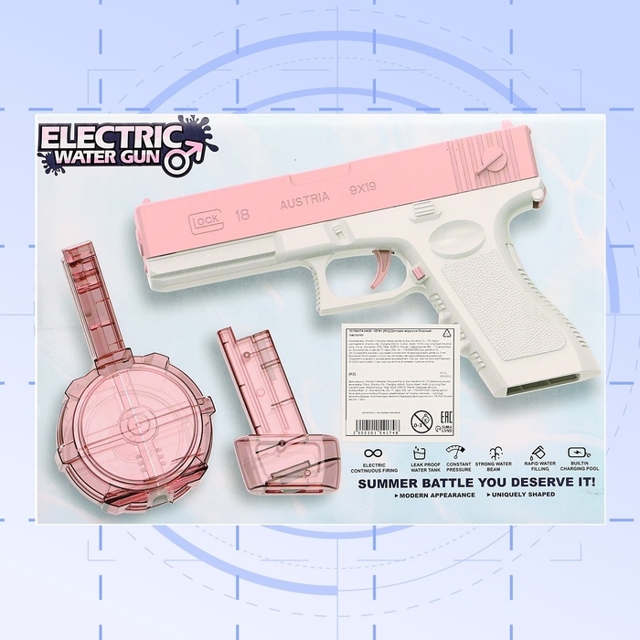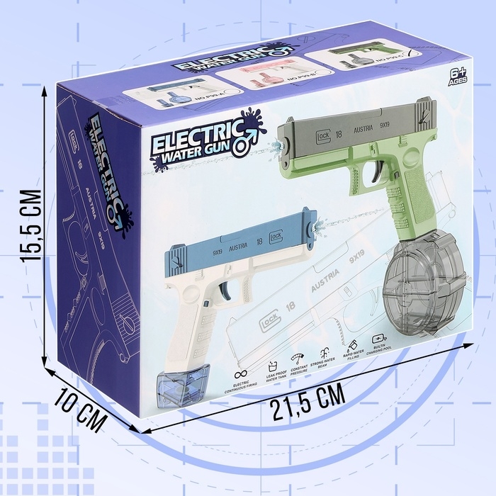 Водный пистолет «Глок», работает от аккумулятора, 22 см.