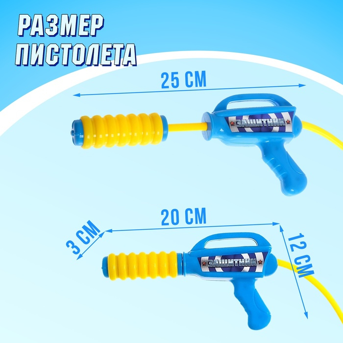 С детским пистолетом «Защитник» ребёнок сможет устроить настоящее водное сражение! Ранец-баллон станет любимой игрушкой маленького солдата в жаркую погоду, ведь он не только поможет устроить захватывающие бои с друзьями на свежем воздухе, но и спасёт от перегревания.