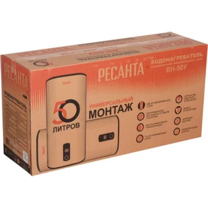 Водонагреватель "Ресанта" ВН-50У, накопительный, 2 кВт, 50 л, до 75 °С, дисплей, белый