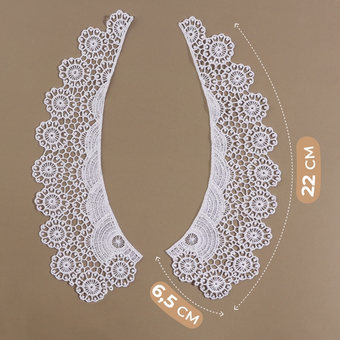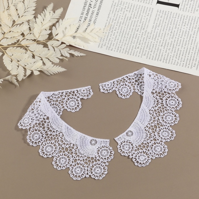 Воротник пришивной, гипюровый, 22 × 6,5 см, цвет белый