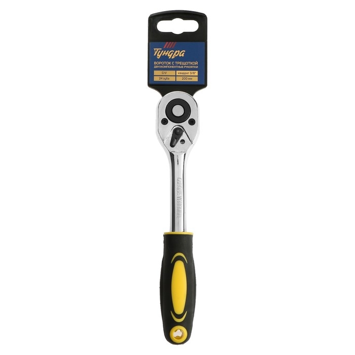 Вороток с трещоткой ТУНДРА, CrV, квадрат 3/8", 2К рукоятка, 24 зуба, 200 мм