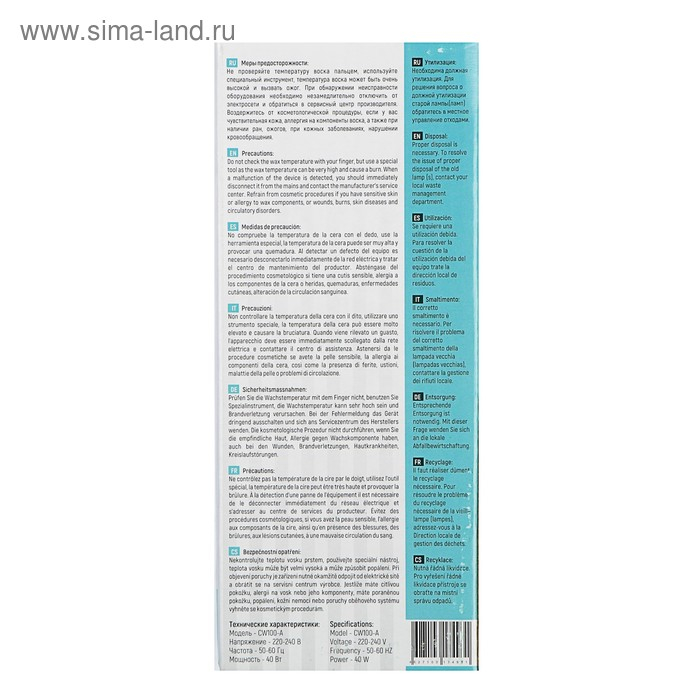 Воскоплав TNL CW100-A предназначен для нагревания воска в картридже при процедуре эпиляции.
