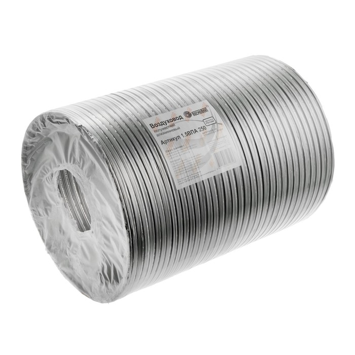 Воздуховод гофрированный "КосмоВент", d=250 мм, раздвиж до 1.5 м, алюминий 80 мКм