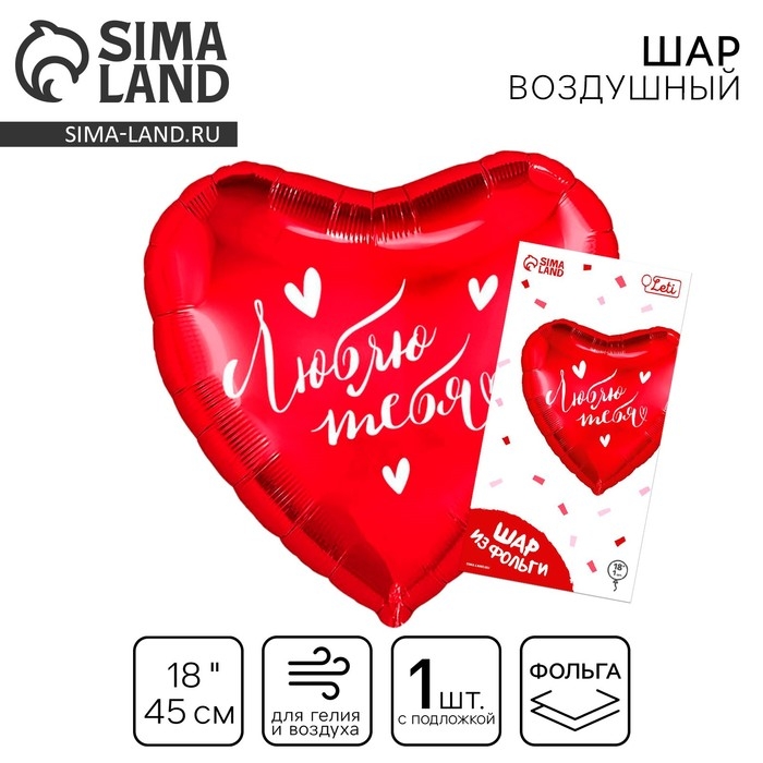 Воздушный шар фольгированный 18" «Люблю тебя» в форме сердца, с подложкой