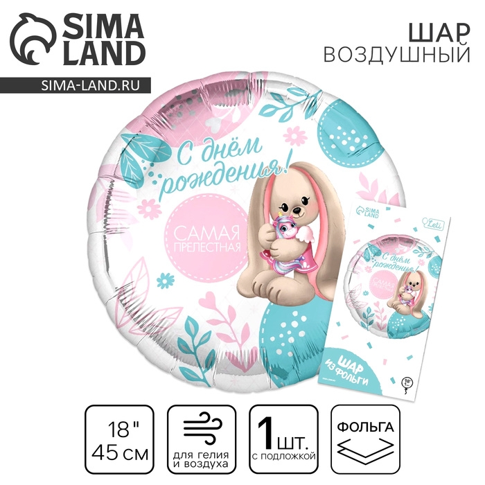 Воздушный шар фольгированный 18" «Самая прелестная» круг, с подложкой