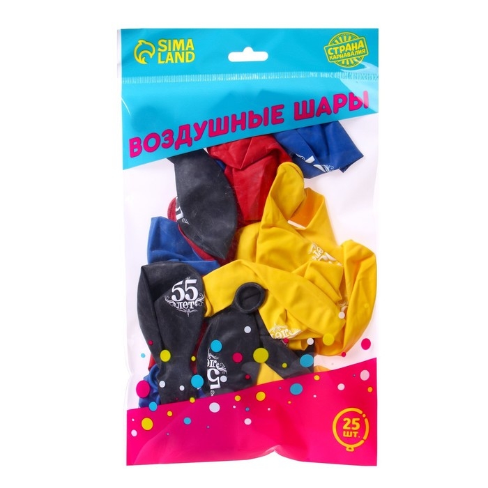 Воздушный шар латексный 12" "55 лет", 25 шт.