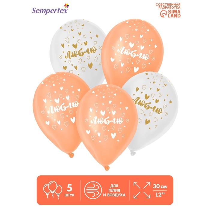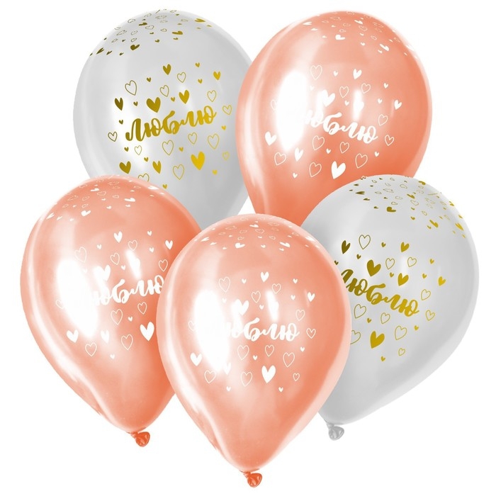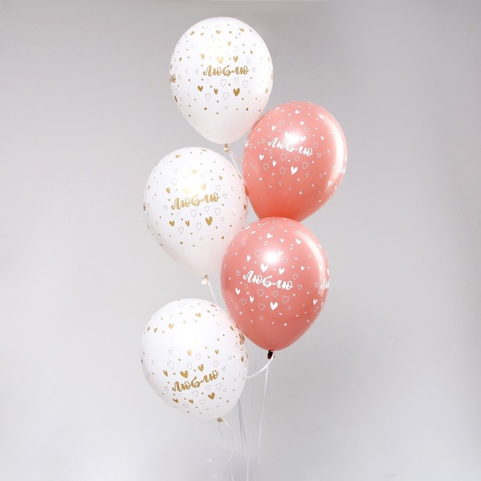 Воздушный шар латексный 12" «Люблю», пастель, цвет розовый, белый, 5 шт.
