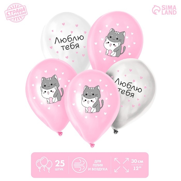 Воздушный шар латексный 12" «Люблю тебя», милые котики, 25 шт.