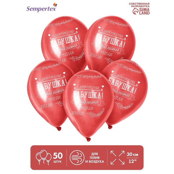 Воздушный шар латексный 12" «Мудрой бабушке», пастель, цвет красный, 50 шт.
