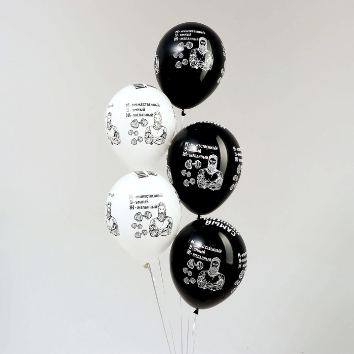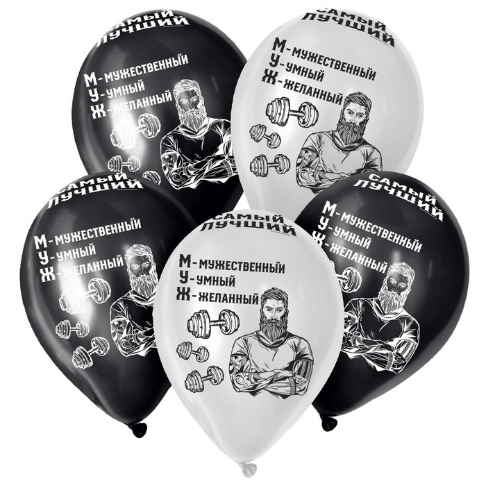 Воздушный шар латексный 12" «МУЖ», пастель, цвет чёрный, белый, 5 шт.