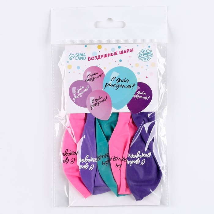 Воздушный шар латексный 12" «С днём рождения», 5 шт.