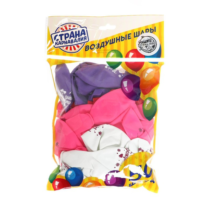 Воздушный шар латексный 12" "С днём рождения", 50 шт.