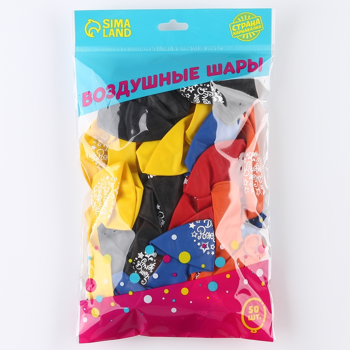 Воздушный шар латексный 12" «С днём Рождения. Диско», 50 шт.