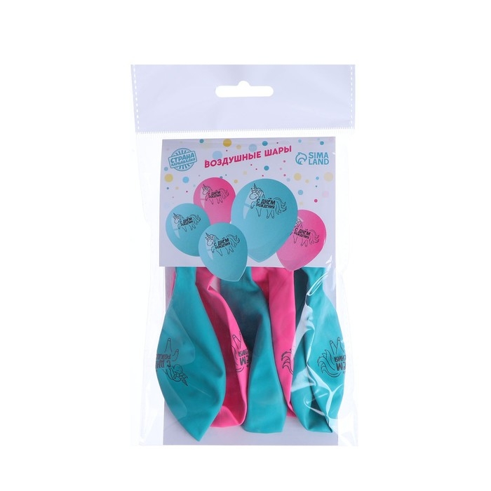 Воздушный шар латексный 12" «С днём рождения», единорожка, 5 шт.