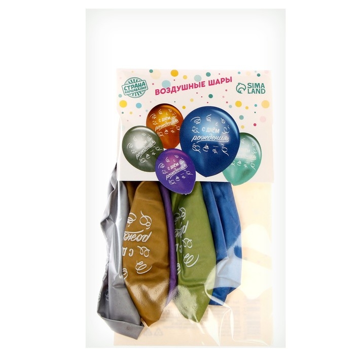 Воздушный шар латексный 12" «С Днём Рождения», хром, 5 шт.