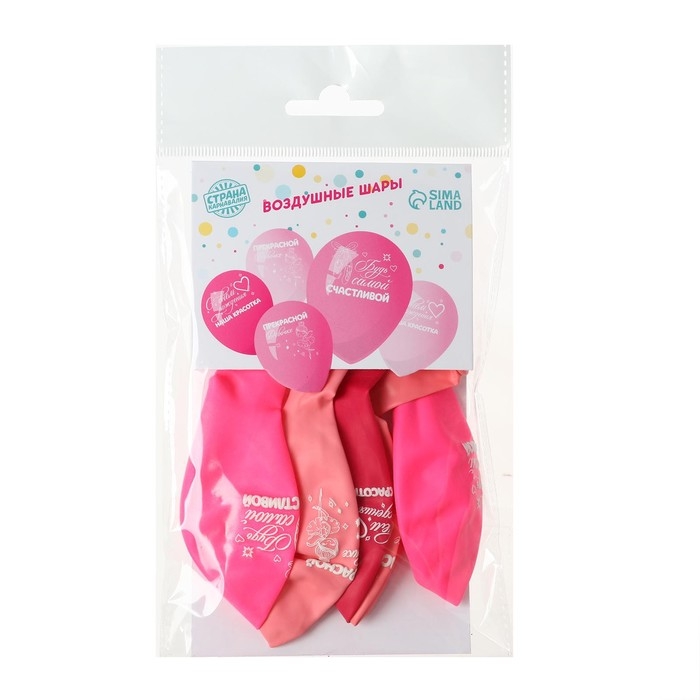 Воздушный шар латексный 12" "С днем рождения, красотка", фуксия, 5 шт.