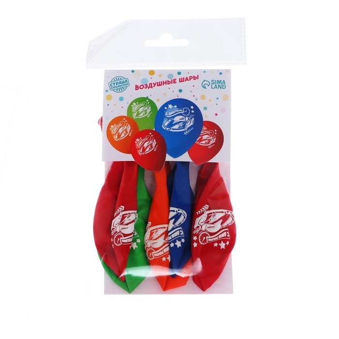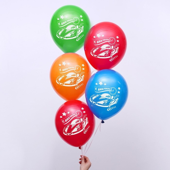 Воздушный шар латексный 12" "С Днем Рождения. Машинки" , 5 шт.