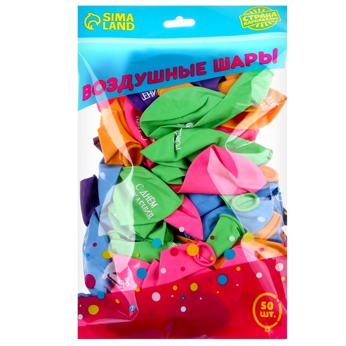 Воздушный шар латексный 12" «С днём рождения», минимализм, 50 шт.