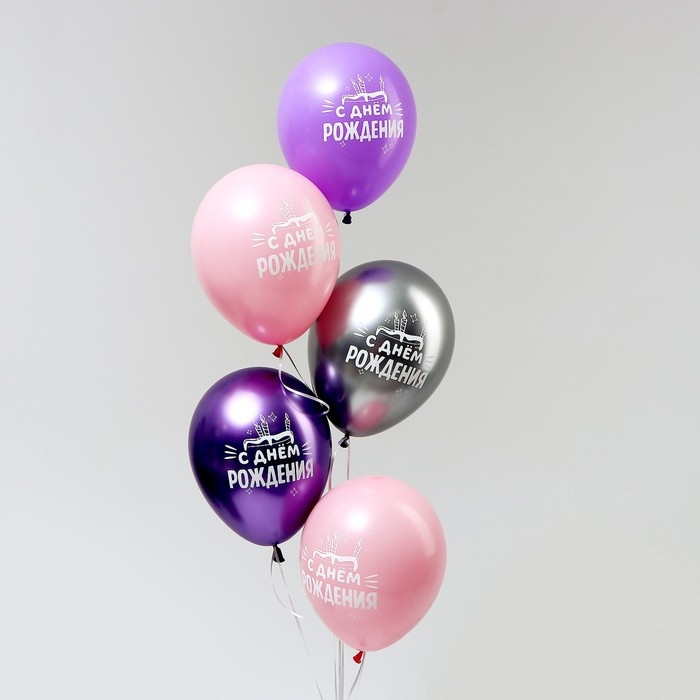 Воздушный шар латексный 12" "С Днем Рождения..", пастель, 25 шт.