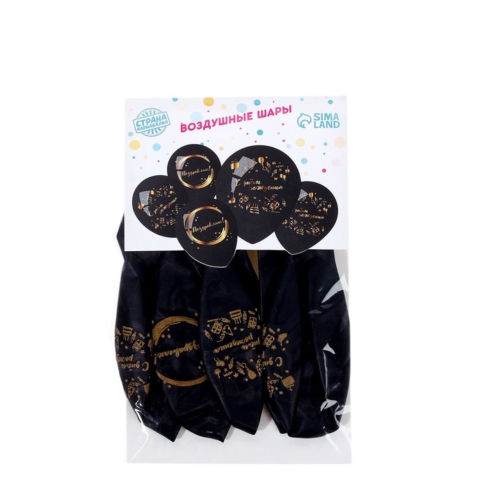Воздушный шар латексный 12" «С Днём Рождения», стильный праздник, 5 шт.