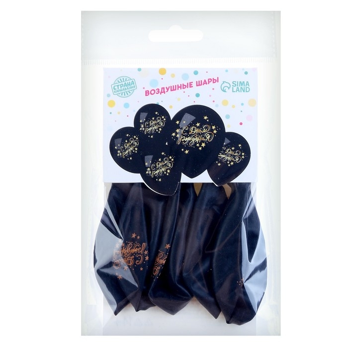 Воздушный шар латексный 12" «С Днём Рождения», звёзды, 5 шт.