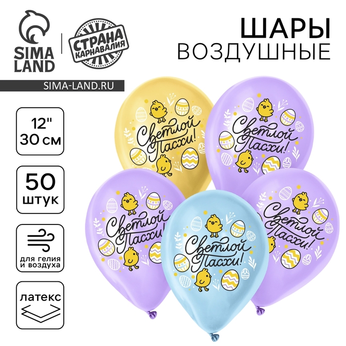 Воздушный шар латексный 12" «Светлой Пасхи», цыплята, 50 шт.