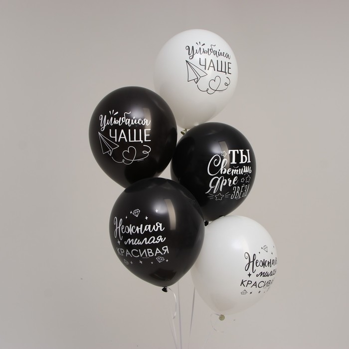 Воздушный шар латексный 12" «Ты светишь ярче звезд», комплименты для неё, 5 шт.
