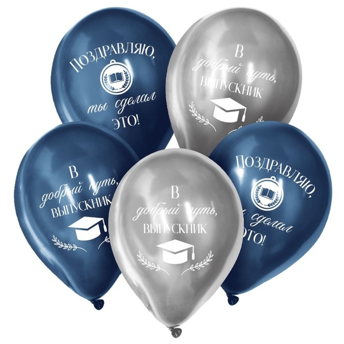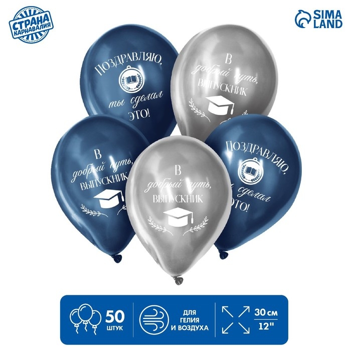 Воздушный шар латексный 12" «В добрый путь, выпускник», хром, 50 шт.