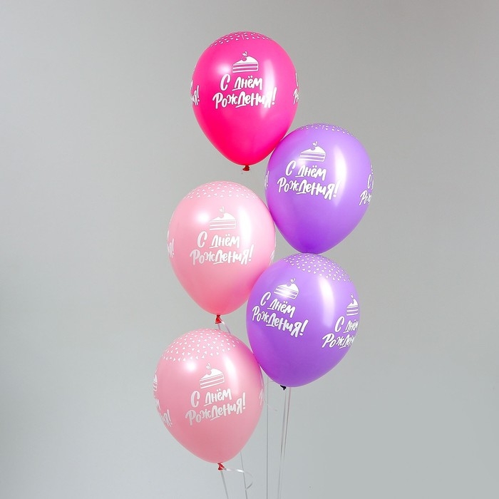 Воздушный шар латексный 12" «Вишенка на торт», пастель, цвет сирен., розов., фуксия, 15 шт.