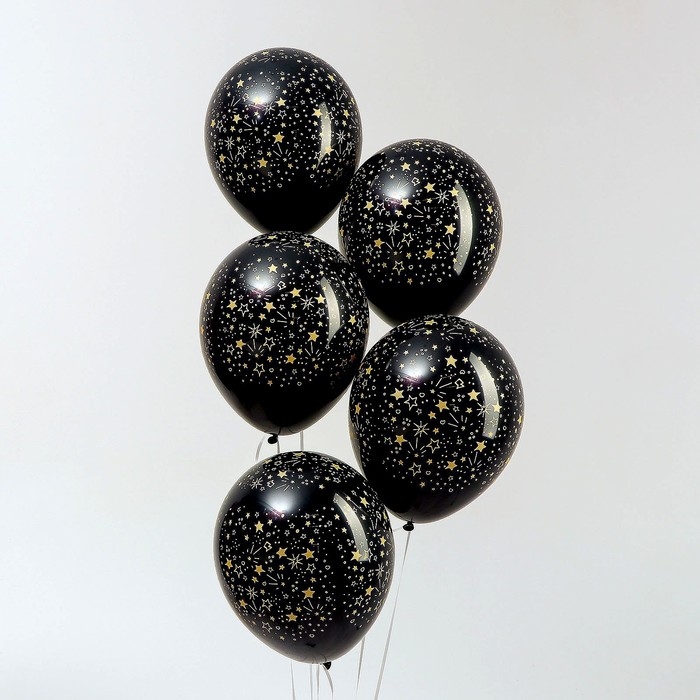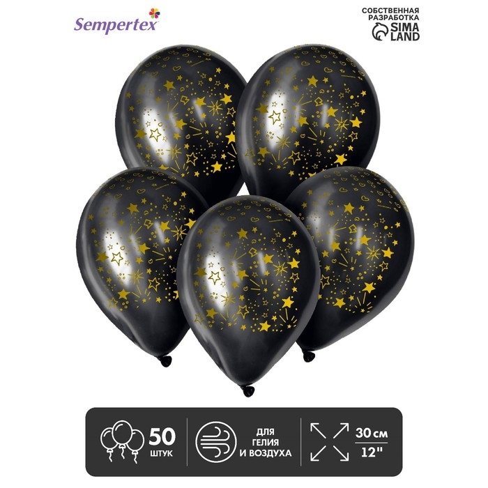 Воздушный шар латексный 12" "Звездный дождь.", пастель, цвет чёрный, 50 шт.