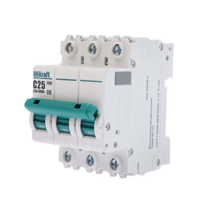 Выключатель автоматический SE DEKraft ВА-101, 3 полюса, С, 25 А, 4.5 кА, 11080DEK