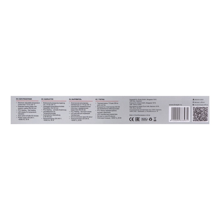 Выпрямитель BRAYER BR3335, 50 Вт, керамическое покрытие, до 230 °C, LED, чёрный