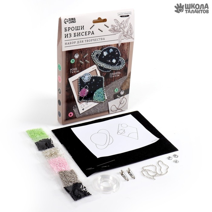 Вышивка бисером. Брошь «Ромб и планета», набор для творчестваа
