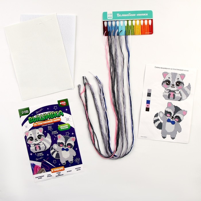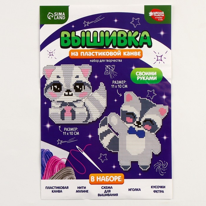 Вышивка крестиком для детей на пластиковой канве «Енотики», набор для творчества