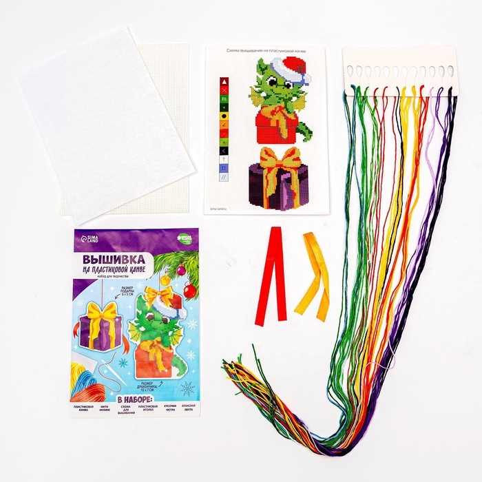 Вышивка крестиком на пластиковой канве «Дракоша с подарком», новогодний набор для творчества