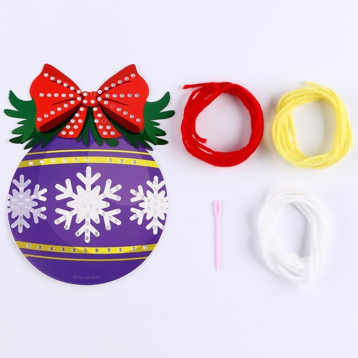 Вышивка пряжей на новый год «Ёлочный шарик» на картоне, новогодний набор для творчества