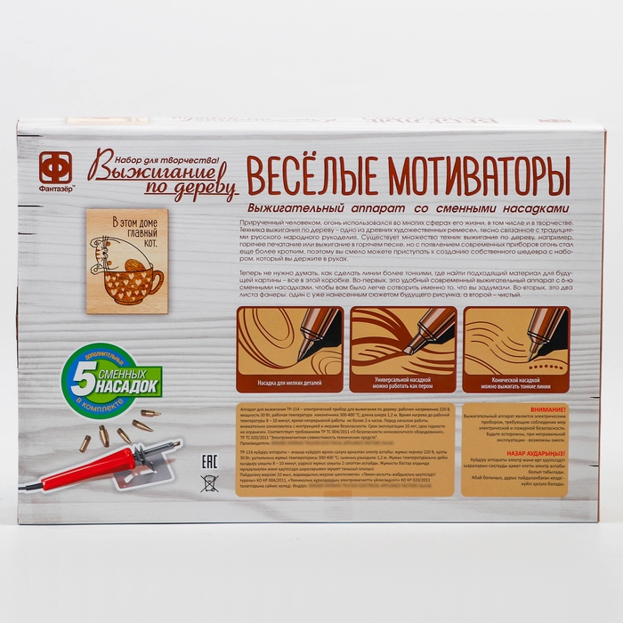 С набором для выжигания от торговой марки «Фантазёр» вы создадите картину, которая впишется в любой интерьер и каждый день будет напоминать, что жизнь прекрасна и мотивировать всех членов семьи улыбаться чаще! Особенно если картинку разместить на видном месте или установить на любой полочке с помощью пластикового мольберта.