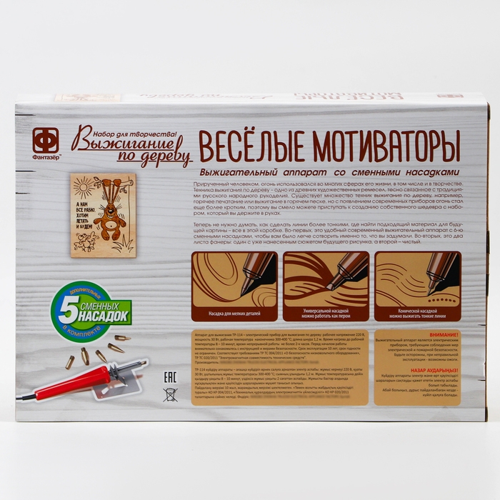 С набором для выжигания от торговой марки «Фантазёр» вы создадите картину, которая впишется в любой интерьер и каждый день будет напоминать, что жизнь прекрасна и мотивировать всех членов семьи улыбаться чаще! Особенно если картинку разместить на видном месте или установить на любой полочке с помощью пластикового мольберта.