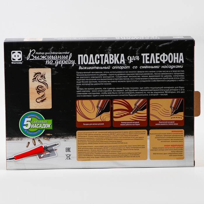 С набором для выжигания от торговой марки «Фантазёр» вы создадите подставку для телефона, которая впишется в любой интерьер и будет приносить пользу.