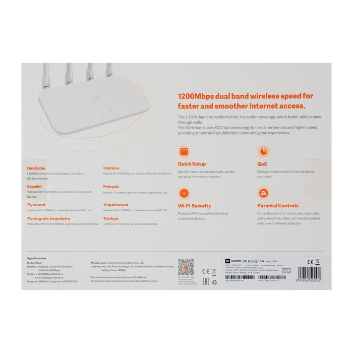Wi-Fi роутер беспроводной Xiaomi Mi WiFi Router 4 (4A), 10/100 Мбит, белый