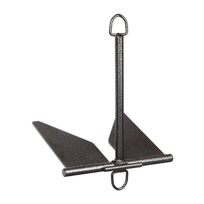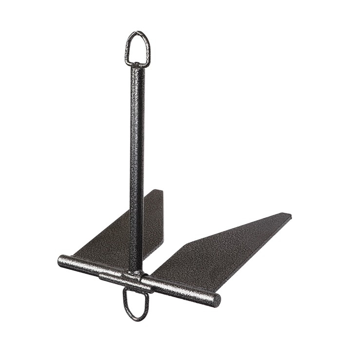 Якорь повышенной держащей силы российского производства Патриот. Из оцинкованной стали на лодку грузоподъемностью до 400 кг., устроен по шарнирному принципу, но имеет вытянутые вдоль веретена длинные плоские лапы, тонкое шарнирное соединение со штоком на оси вращения и два зацепных кольца, позволяющие высвободить якорь из зацепа. Эффективен на течении, так как чем сильнее течение, тем больше происходит заглубление.