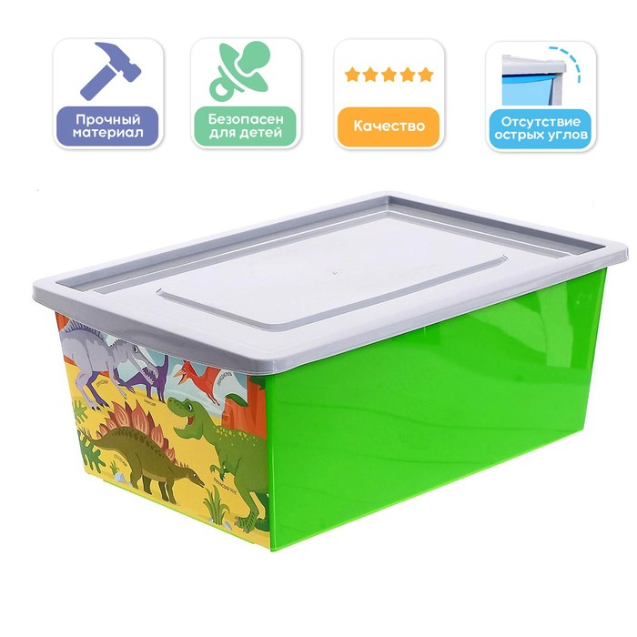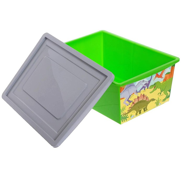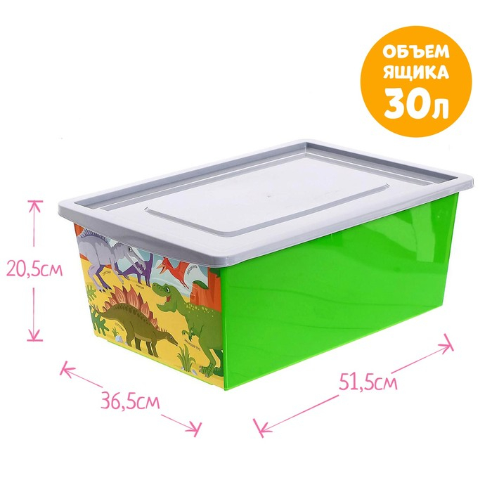 Ящик для игрушек, с крышкой, «Дино. Стегозавр», объём 30 л, цвет салатовый