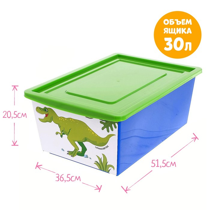 Ящик для игрушек, с крышкой, «Дино. Тирекс», объём 30 л, цвет синий