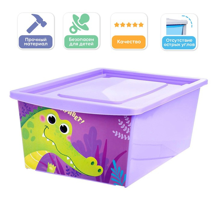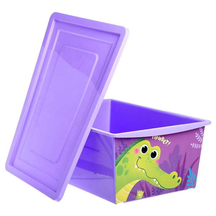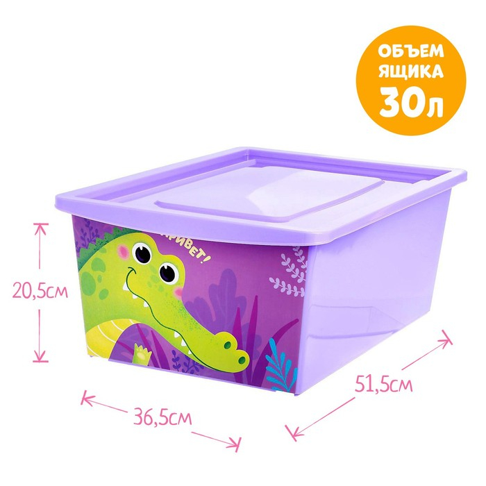 Ящик для игрушек с крышкой, «Весёлый зоопарк», объем 30 л, цвет фиолетовый