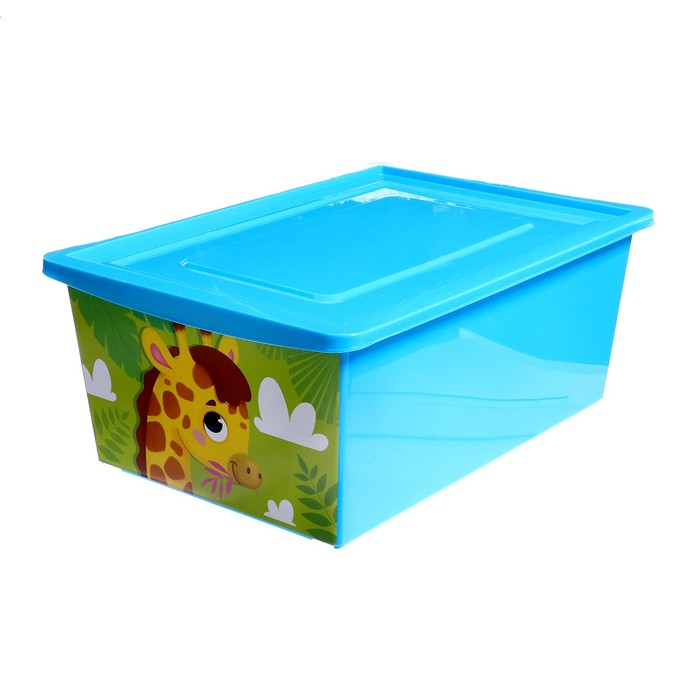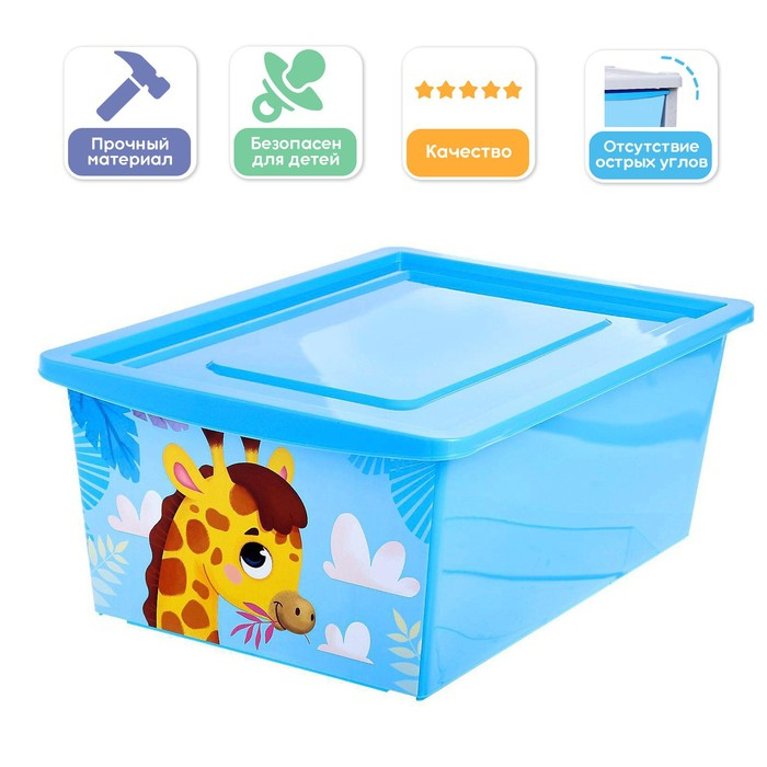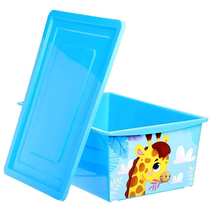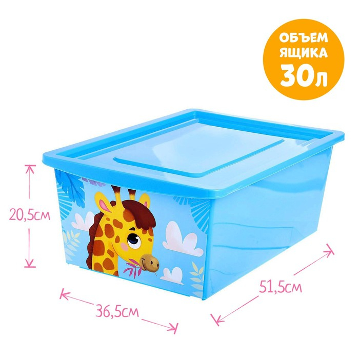 Ящик для игрушек, с крышкой, «Веселый зоопарк», объём 30 л, цвет голубой