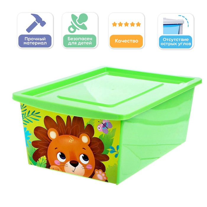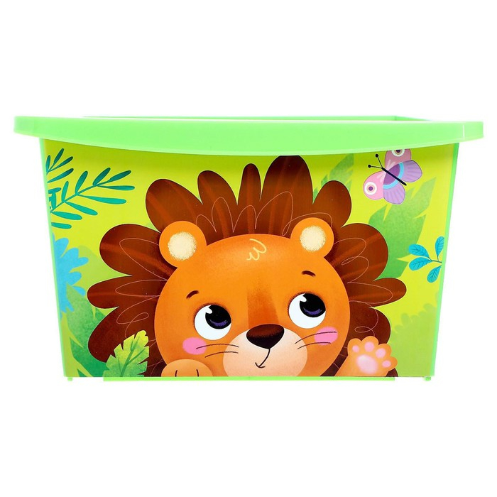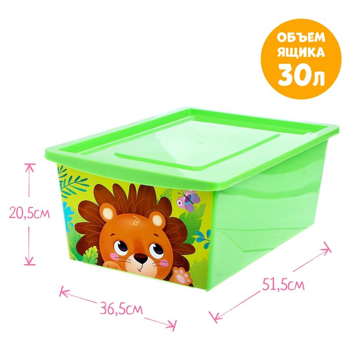 Ящик для игрушек, с крышкой, «Весёлый зоопарк», объём 30 л, цвет зелёный