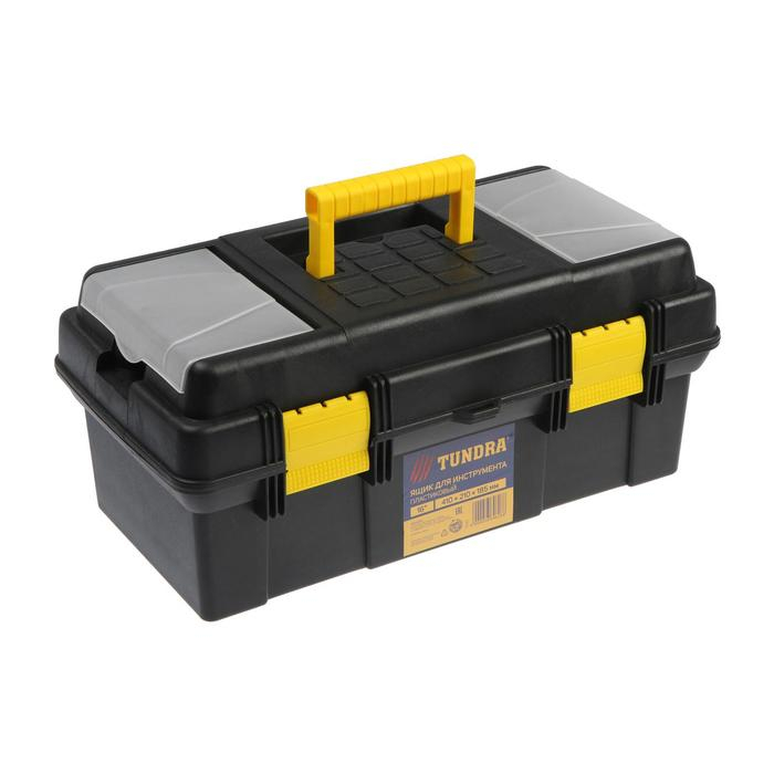 Ящик для инструмента ТУНДРА, 16", 410 х 210 х 185 мм, пластиковый, лоток, два органайзера