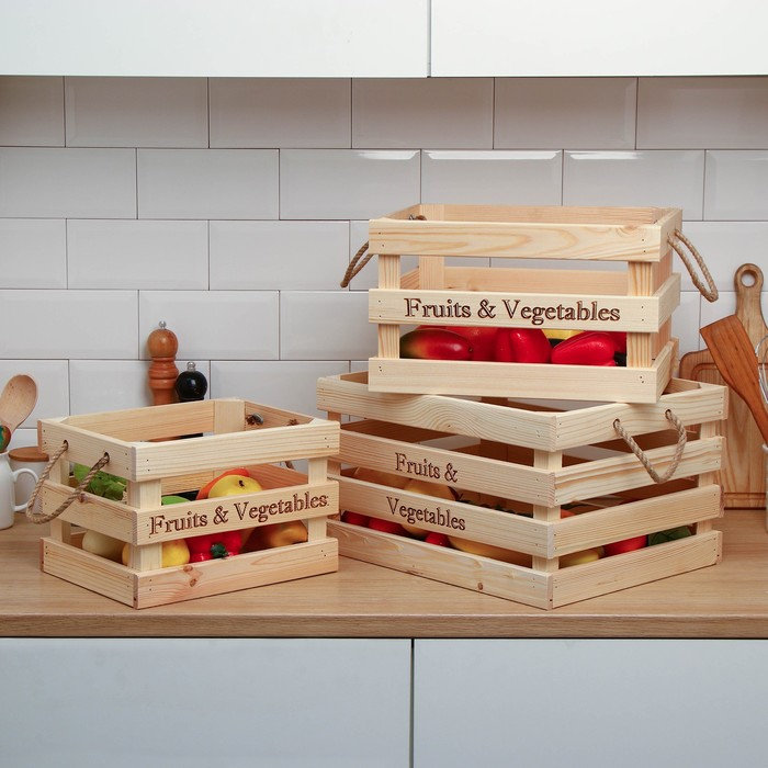 Ящик для овощей и фруктов, 35 × 28 × 21 см, деревянный, Greengo
